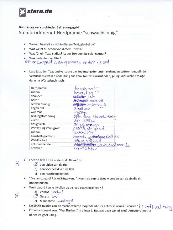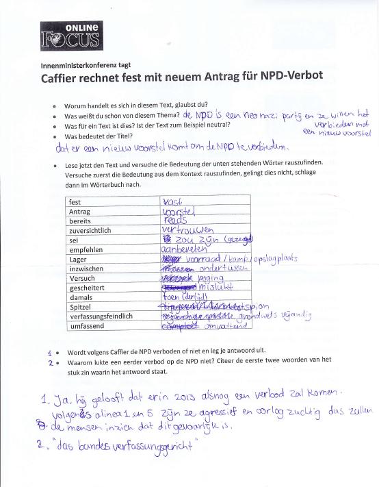 Ik zit hier denk ik wel op het goede niveau (B1/B2), het ging dan ook elke week beter. Dit komt deels door het extra Duits groepje dat Esther is begonnen.